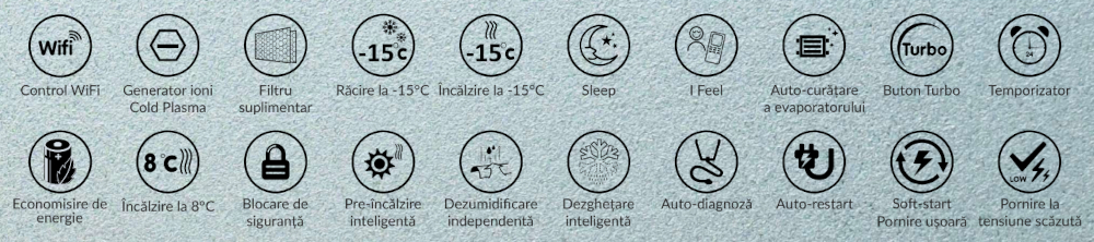 Control inteligent Wi-Fi Puteti controla aparatul de aer conditionat oricand si de oriunde, prin functia Wi-Fi, cu ajutorul aplicatiei specifice si a telefonului mobil inteligent. Modulul Wi-Fi nu necesita instalre, fiind integrat din fabrica in unitatea interioara. |