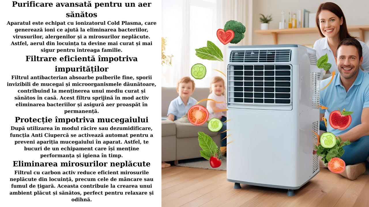 Filtru Antibacterian - Absoarbe pulberile fine, sporii invizibili de mucegai si microorganismele daunatoare. Ajuta la eliminarea bacteriilor si pastrarea unui mediu curat, mentinand un aer proaspat in casa ta.