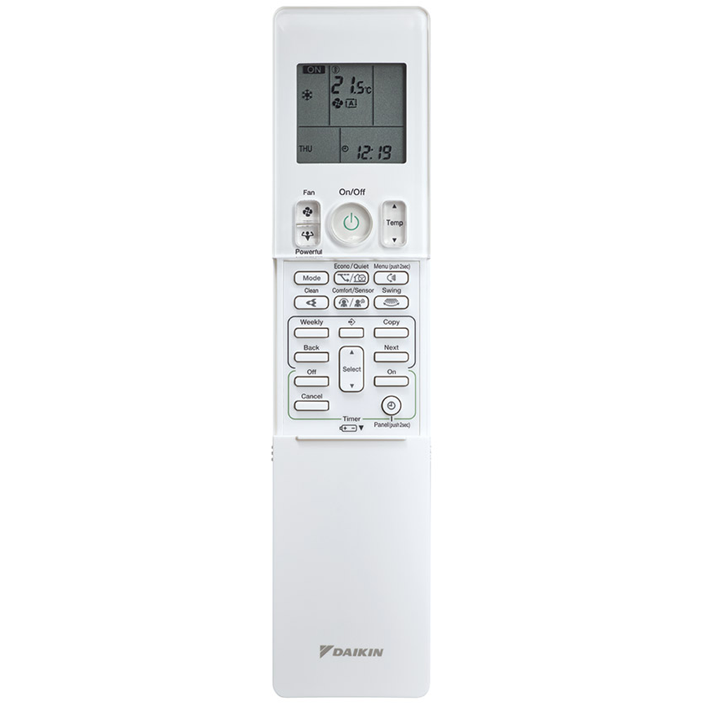 Telecomanda cu infrarosu este solutia standard pentru controlul la distanta al unitatii, iar cand pleci de acasa te poti baza pe functia Daikin Residential Controller, pe care o poti instala pe smartphone sau tableta, gestionand confortabil climatul interior de oriunde te-ai afla.