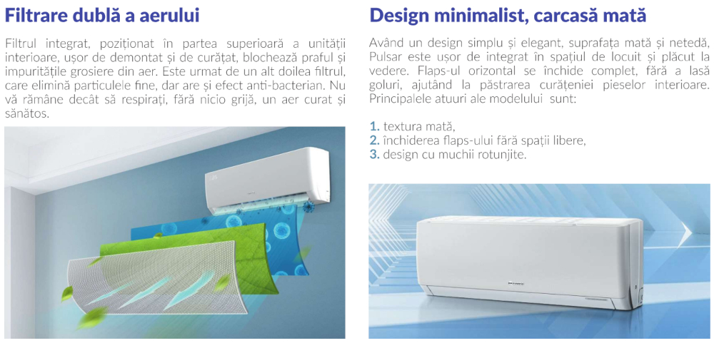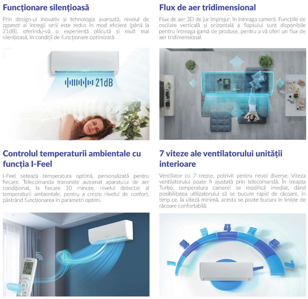 Aer conditionat Gree Pulsar GWH12AGBXB-K6DNA1A, 12000 BTU, A++/A+, Wi-Fi, Inverter, Cold Plasma+, Autocuratare, I Feel