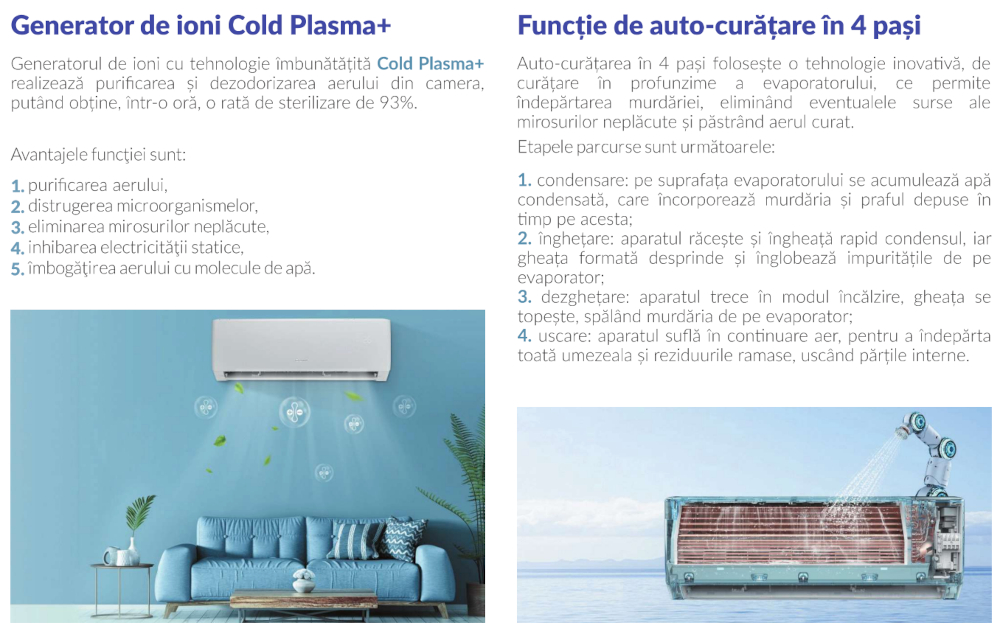 Generator de ioni Cold Plasma+ Noua generatie de generator de ioni Cold Plasma+ purifica aerul din camera, distrugand bacteriile cu o rata de sterilizare de 93%, elimina mirosurile neplacute si umidifica aerul. |
