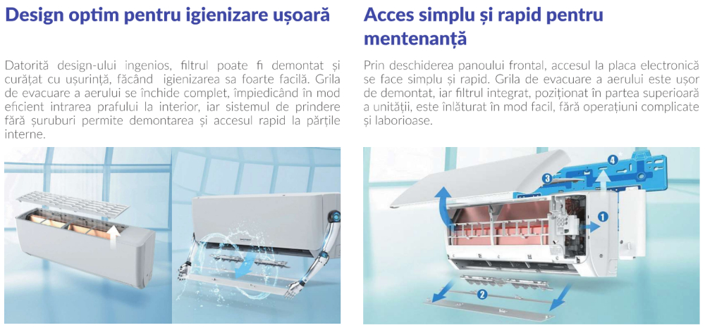 Kit de instalare inclus Kit-ul de instalare, compus din traseu frigorific (tevi cupru gaz si lichid + izolatia aferenta), tub de evacuare condens si protectie pentru trecerea prin perete, este inclus. |